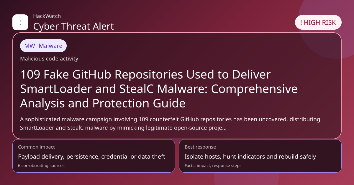 A sophisticated malware campaign involving 109 counterfeit GitHub repositories has been uncovered, distributing SmartLoader and StealC malware by mimicking legitimate open-source projects. This article consolidates multiple sources to provide a detailed breakdown of the threat, affected users, and actionable steps to secure yourself in 2026 and beyond.