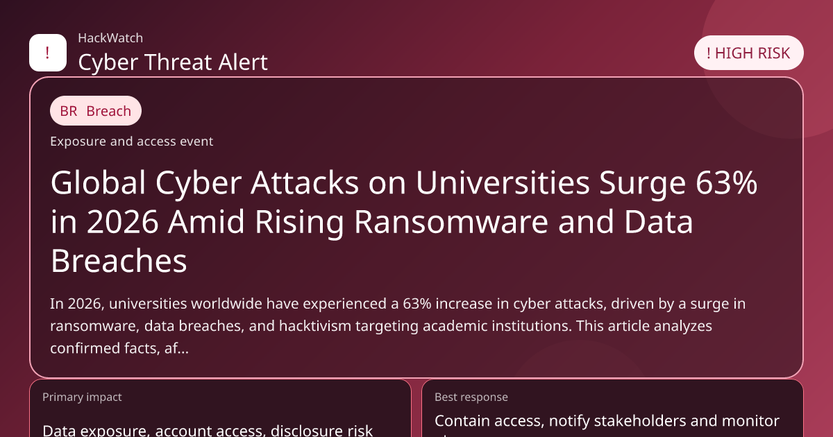 In 2026, universities worldwide have experienced a 63% increase in cyber attacks, driven by a surge in ransomware, data breaches, and hacktivism targeting academic institutions. This article analyzes confirmed facts, affected parties, and actionable steps for universities and individuals to secure themselves against evolving threats.