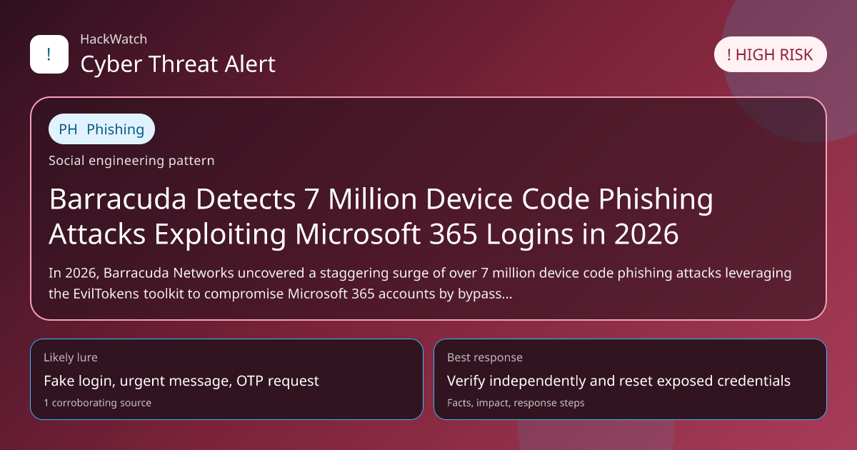 In 2026, Barracuda Networks uncovered a staggering surge of over 7 million device code phishing attacks leveraging the EvilTokens toolkit to compromise Microsoft 365 accounts by bypassing multifactor authentication. This article consolidates multiple reports to provide a comprehensive analysis of the attack methods, affected users, and actionable steps to mitigate risks in this evolving threat landscape.