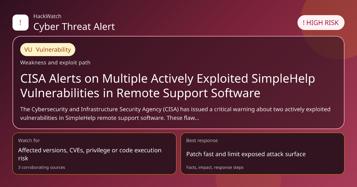 The Cybersecurity and Infrastructure Security Agency (CISA) has issued a critical warning about two actively exploited vulnerabilities in SimpleHelp remote support software. These flaws enable attackers to bypass security controls, granting unauthorized access to corporate networks. This article consolidates multiple corroborating sources to provide a comprehensive analysis of the threat, affected parties, and actionable steps to mitigate risk in 2026.