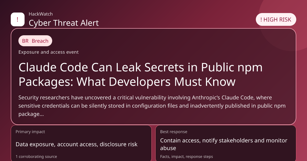 Security researchers have uncovered a critical vulnerability involving Anthropic’s Claude Code, where sensitive credentials can be silently stored in configuration files and inadvertently published in public npm packages. This article consolidates verified findings, explains the risks, identifies who is affected, and provides actionable guidance on mitigation and securing development workflows in 2026.