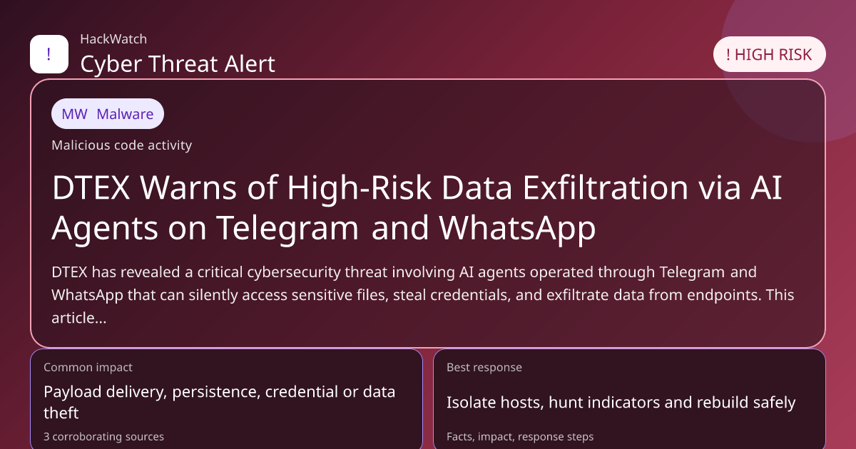 DTEX has revealed a critical cybersecurity threat involving AI agents operated through Telegram and WhatsApp that can silently access sensitive files, steal credentials, and exfiltrate data from endpoints. This article consolidates multiple corroborating reports to provide a comprehensive analysis of the risk, who is affected, and actionable steps to mitigate exposure in 2026.
