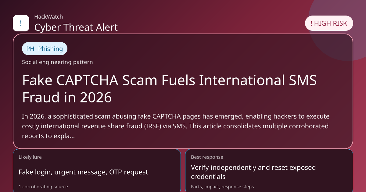 In 2026, a sophisticated scam abusing fake CAPTCHA pages has emerged, enabling hackers to execute costly international revenue share fraud (IRSF) via SMS. This article consolidates multiple corroborated reports to explain how the scam operates, who is affected, and actionable steps users and organizations can take to protect themselves.