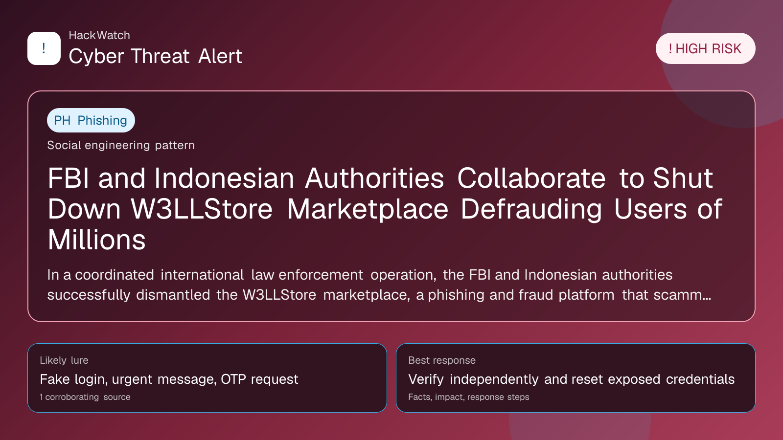 In a coordinated international law enforcement operation, the FBI and Indonesian authorities successfully dismantled the W3LLStore marketplace, a phishing and fraud platform that scammed users worldwide out of millions of dollars. This article details the takedown, confirmed facts, affected parties, and actionable steps users should take to protect themselves in the evolving cybercrime landscape of 2026.