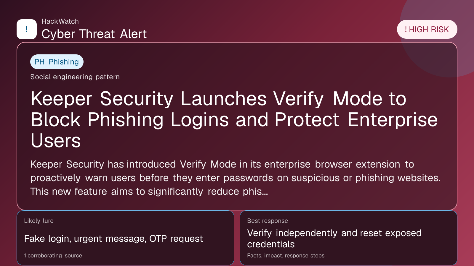 - [Keeper launches Verify Mode to block phishing logins - securitybrief.in](https://securitybrief.in/story/keeper-launches-verify-mode-to-block-phishing-logins)