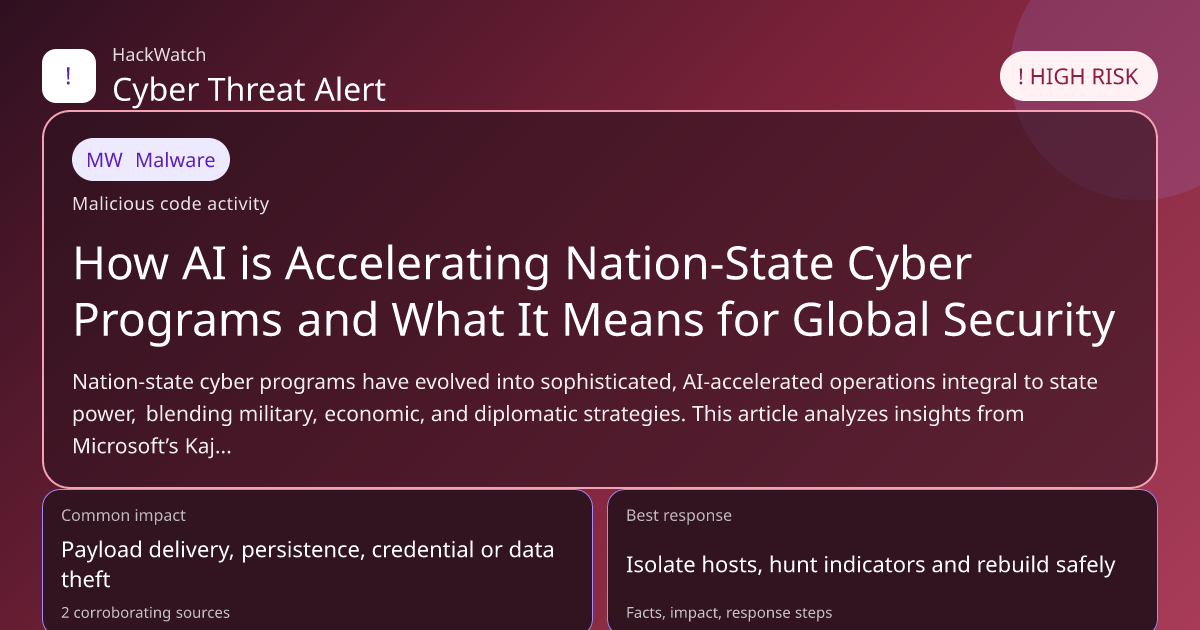 Nation-state cyber programs have evolved into sophisticated, AI-accelerated operations integral to state power, blending military, economic, and diplomatic strategies. This article analyzes insights from Microsoft’s Kaja Ciglic and other experts, detailing how AI expedites cyber operations, the implications for global cybersecurity, and actionable steps individuals and organizations can take to protect themselves in 2026 and beyond.