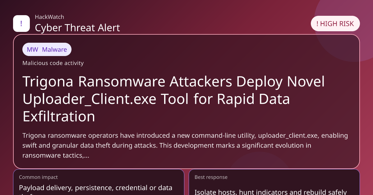 Trigona Ransomware Attackers Deploy Novel Uploader_Client.exe Tool for Rapid Data Exfiltration
