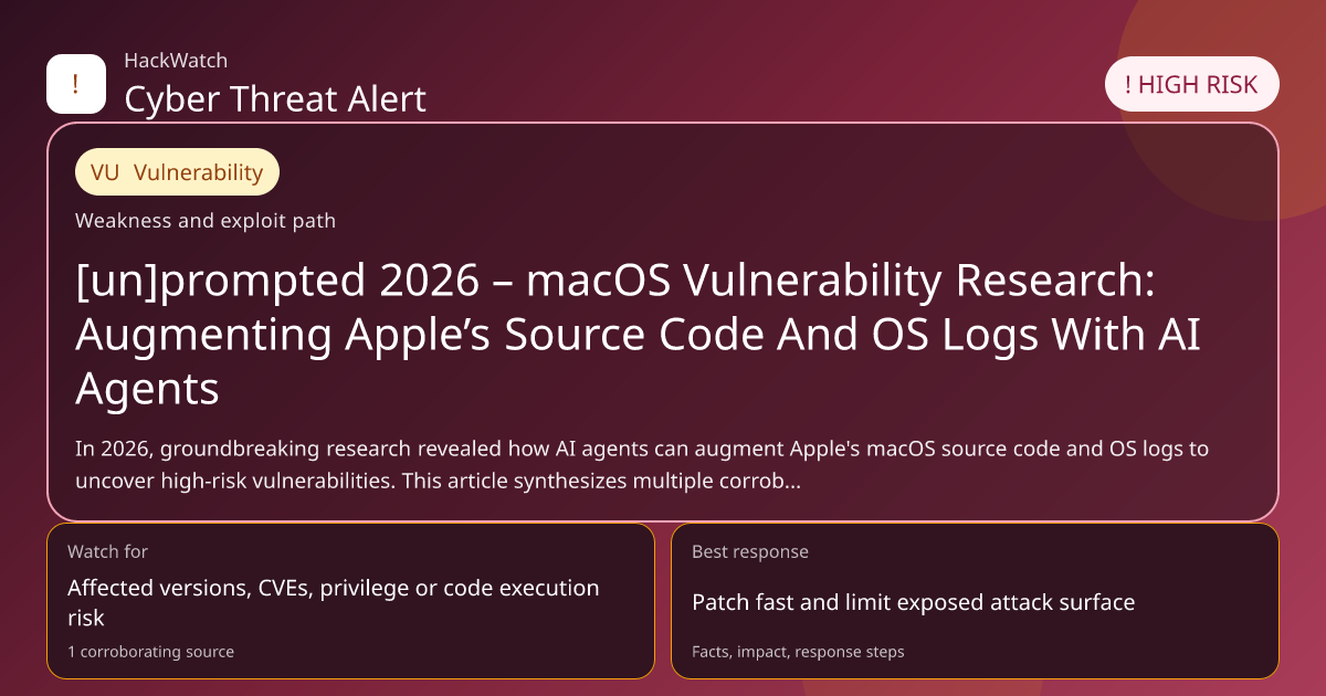 - https://securityboulevard.com/2026/04/unprompted-2026-macos-vulnerability-research-augmenting-apples-source-code-and-os-logs-with-ai-agents/