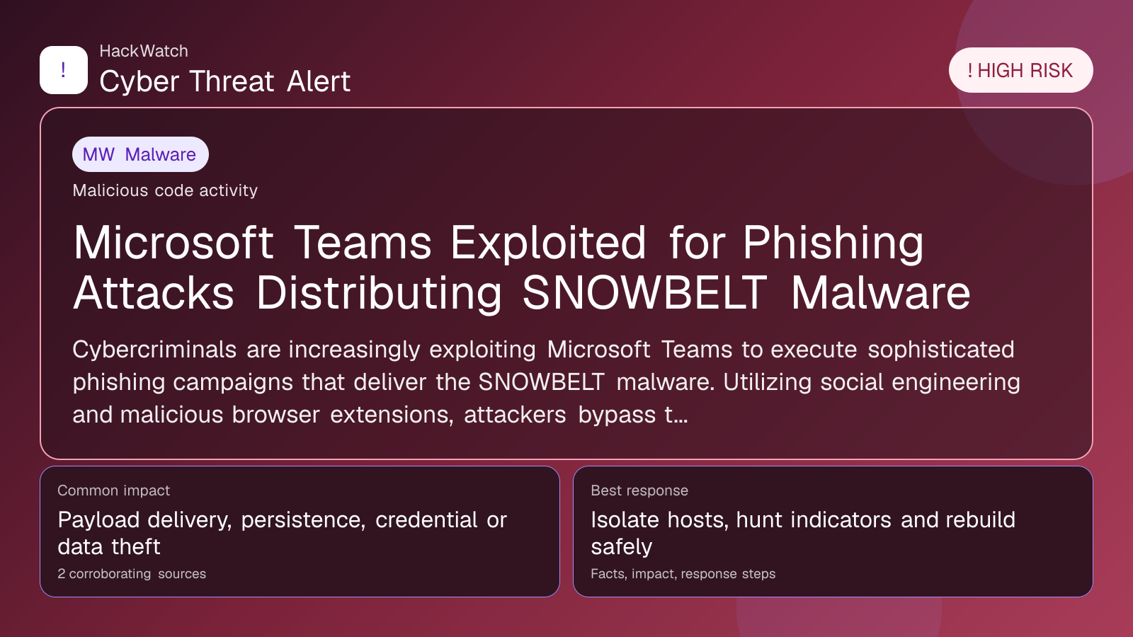 Cybercriminals are increasingly exploiting Microsoft Teams to execute sophisticated phishing campaigns that deliver the SNOWBELT malware. Utilizing social engineering and malicious browser extensions, attackers bypass traditional email defenses and capitalize on users' trust in collaboration platforms. This article consolidates verified reports detailing attack techniques, impacted users, and practical steps to safeguard against this evolving threat in 2026.