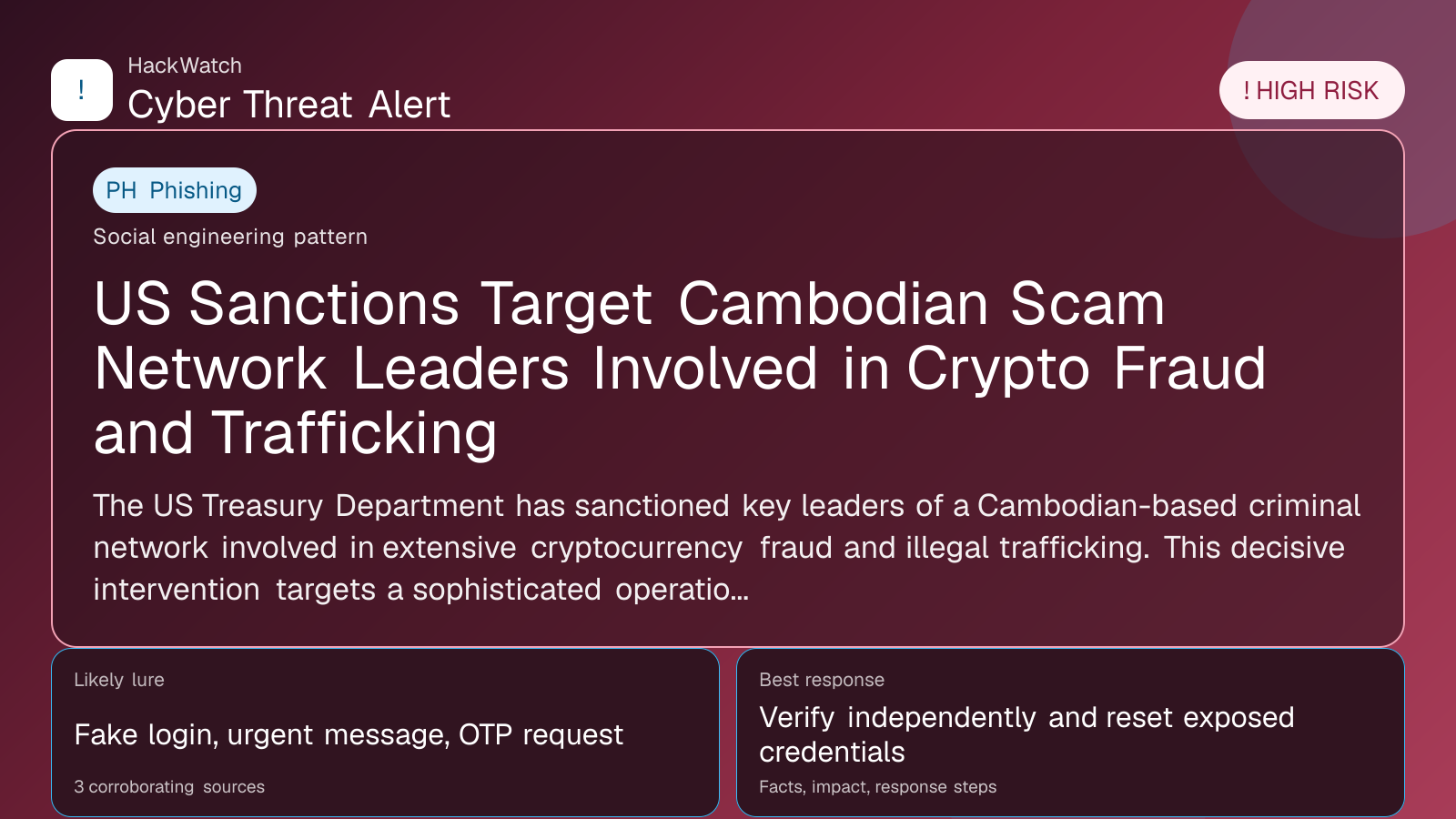 The US Treasury Department has sanctioned key leaders of a Cambodian-based criminal network involved in extensive cryptocurrency fraud and illegal trafficking. This decisive intervention targets a sophisticated operation exploiting crypto platforms to deceive victims worldwide and launder illicit proceeds. Our in-depth review combines verified sources to outline the network's methods, its global impact, and practical guidance for individuals and organizations to safeguard their assets and operations.